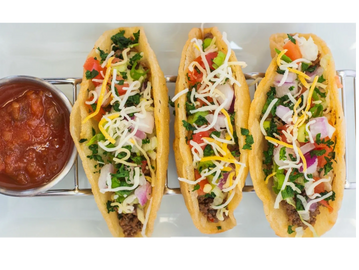 Crunchy Taco, Fried Tilapia, Marinated Steak, Buffalo Chicken, and Vegan (all veggie or soy).